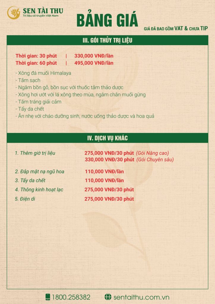 Bảng giá Sen Tài Thu Tân Sơn Nhất