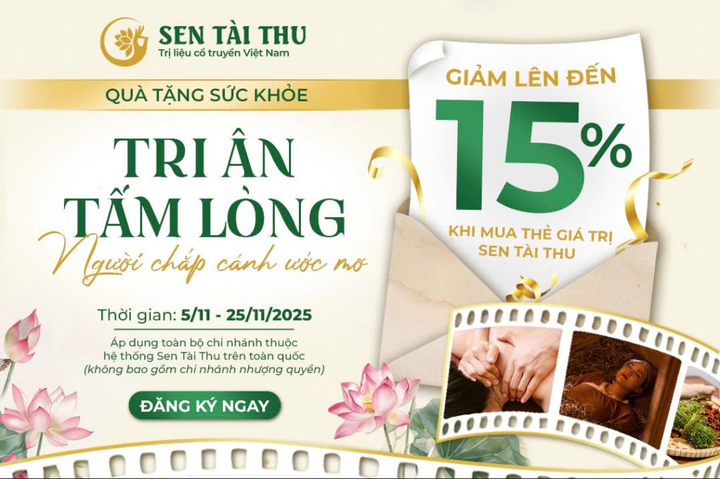 Mừng ngày Nhà giáo Việt Nam 20/11, Sen Tài Thu mang đến chương trình ưu đãi đặc biệt tới các thầy cô, người luôn cần mẫn ươm mầm tri thức, chắp cánh ước mơ bao thế hệ học trò.