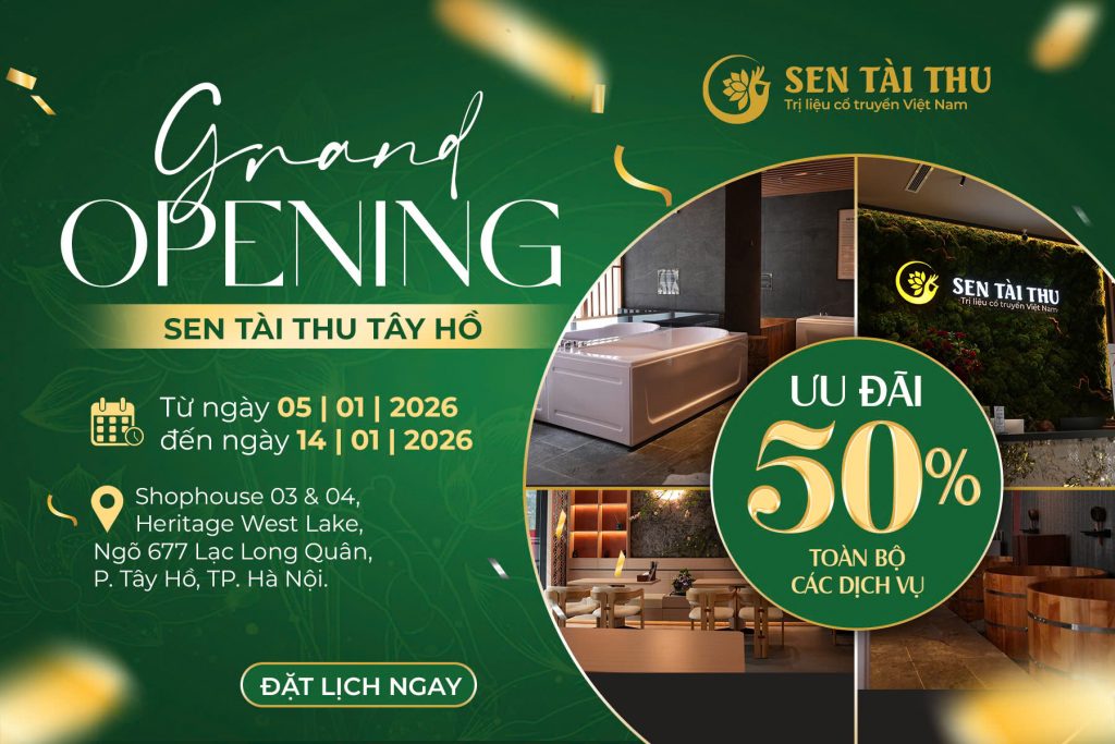 ️Mừng tuần lễ khai trương, từ ngày 5/1 – 14/1/2026, Sen Tài Thu Tây Hồ gửi tặng bạn ưu đãi siêu hấp dẫn: GIẢM 50% TOÀN BỘ CÁC DỊCH VỤ TRỊ LIỆU & MÓN ĂN THỰC DƯỠNG.